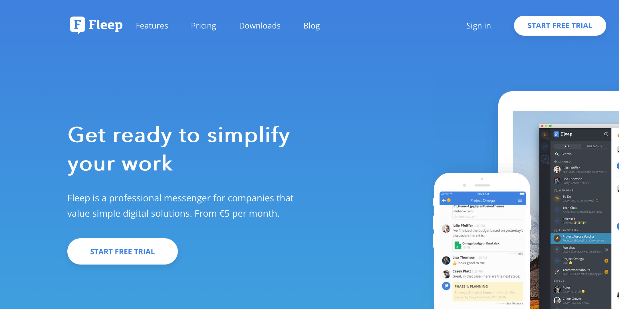 Esta plataforma de comunicación corporativa permite a la empresa relacionarse y colaborar con cualquier tipo de usuario, tenga o no una cuenta de Fleep. Una de sus características destacadas es el sistema de mensajería, que permite organizar las conversaciones o chats por proyectos, temas o equipos de trabajo. En el chat los usuarios pueden crear, asignar y seguir tareas.